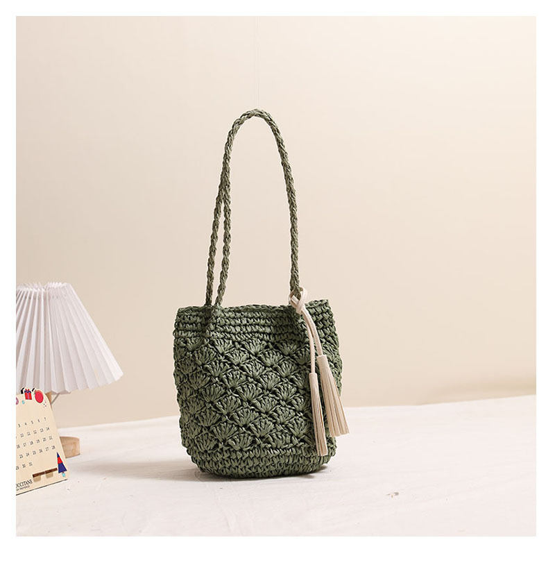 Tassel Shoulder Straw Bag Fan Hollow Out Cutout Pattern Woven Bag Women Vacation Beach Bag Women Bag