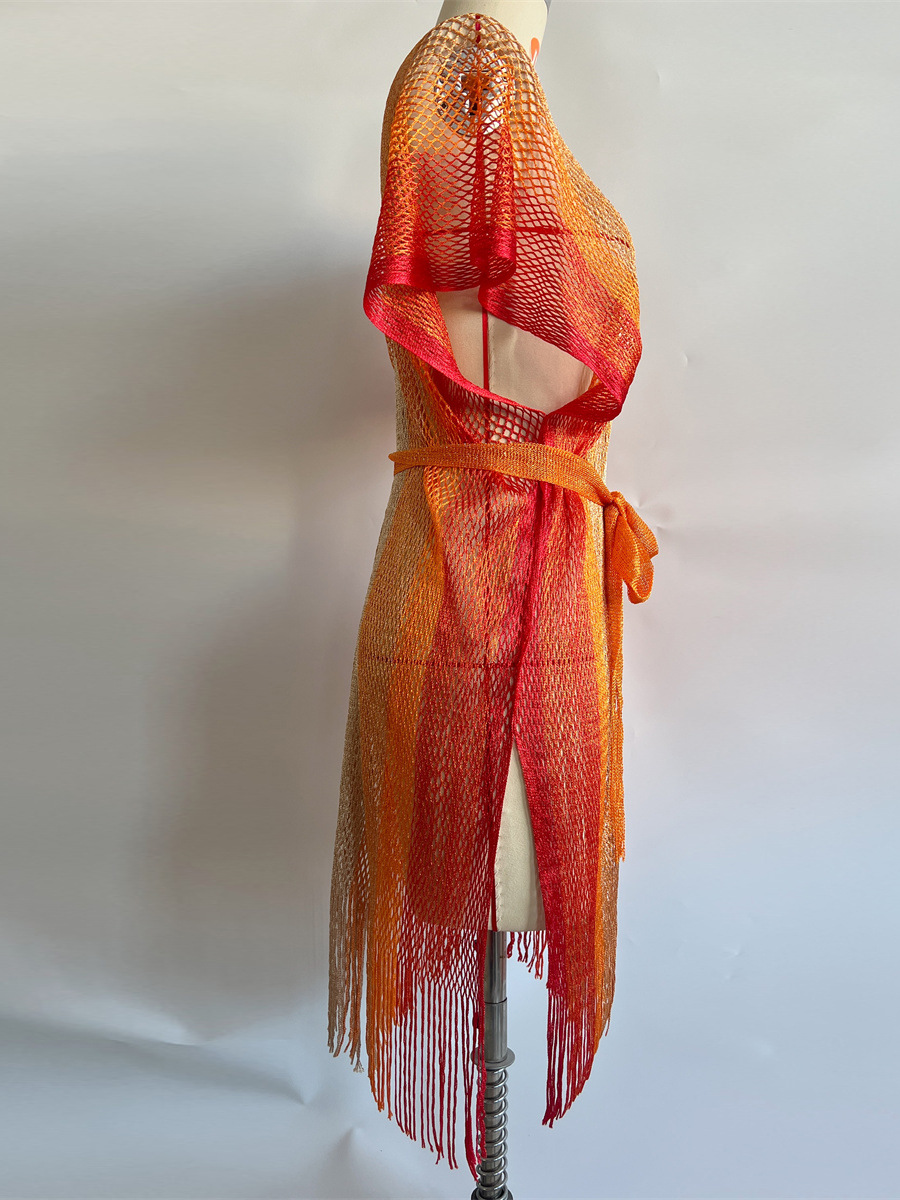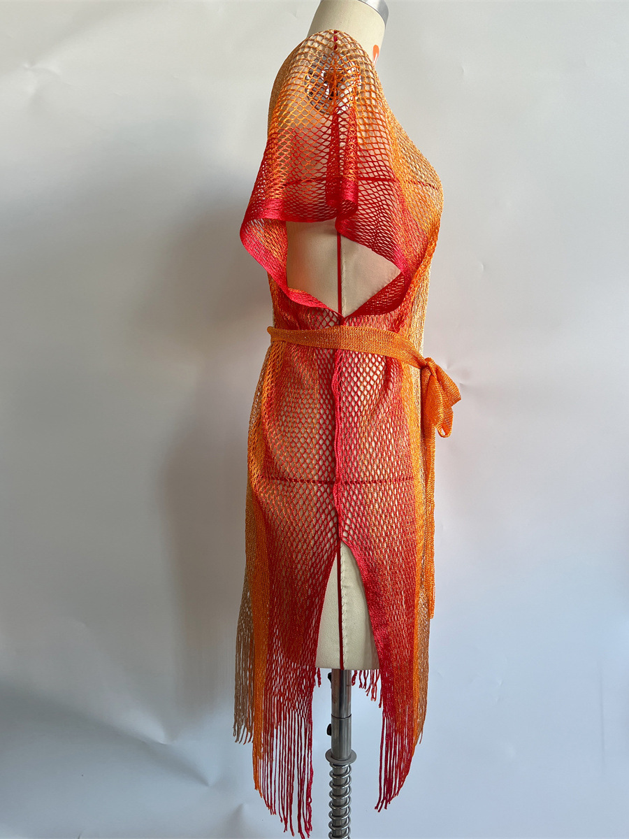Summer Beach Sun Protection Shirt Lace up Cutout Tassel Sexy Slit Beach Cover Up Knitted Cardigan Shawl Crochet hook Crochet hook Crochet hook