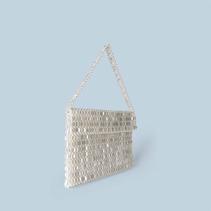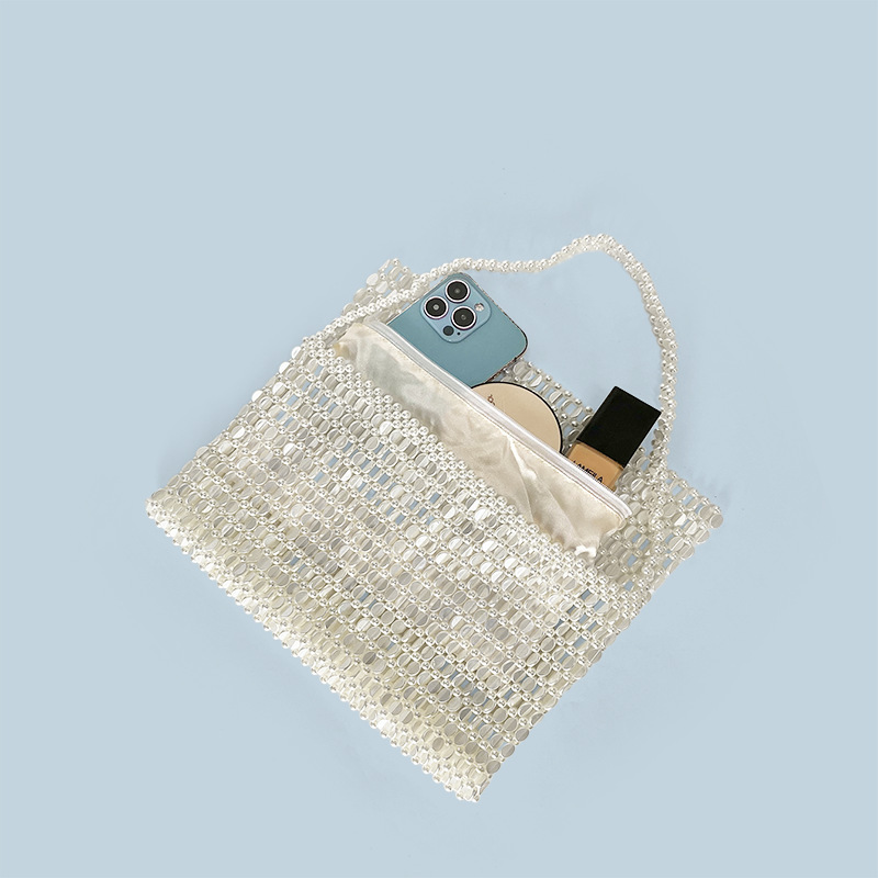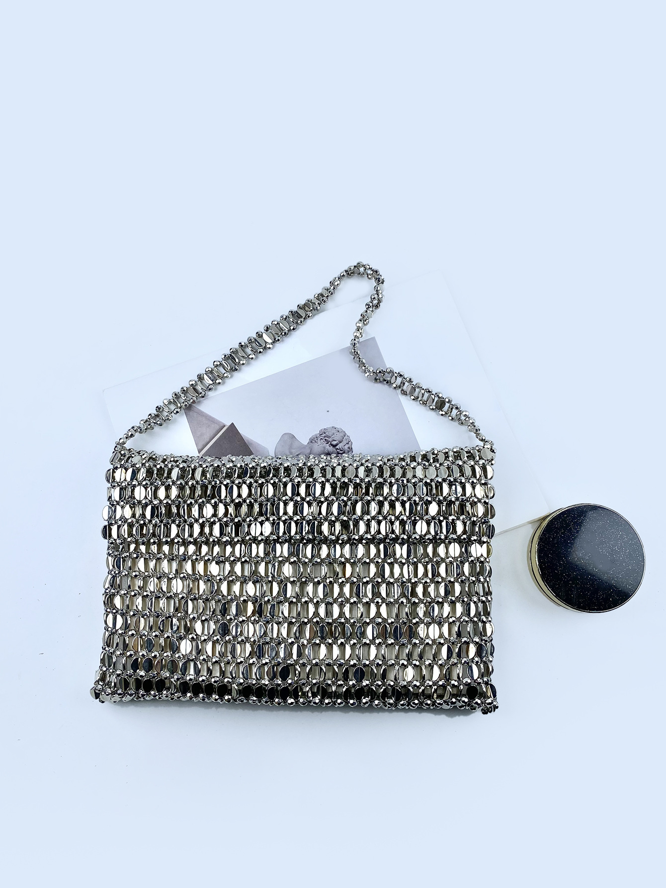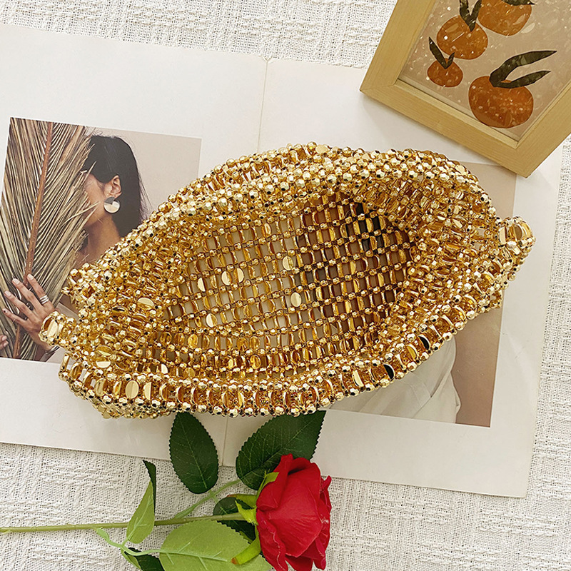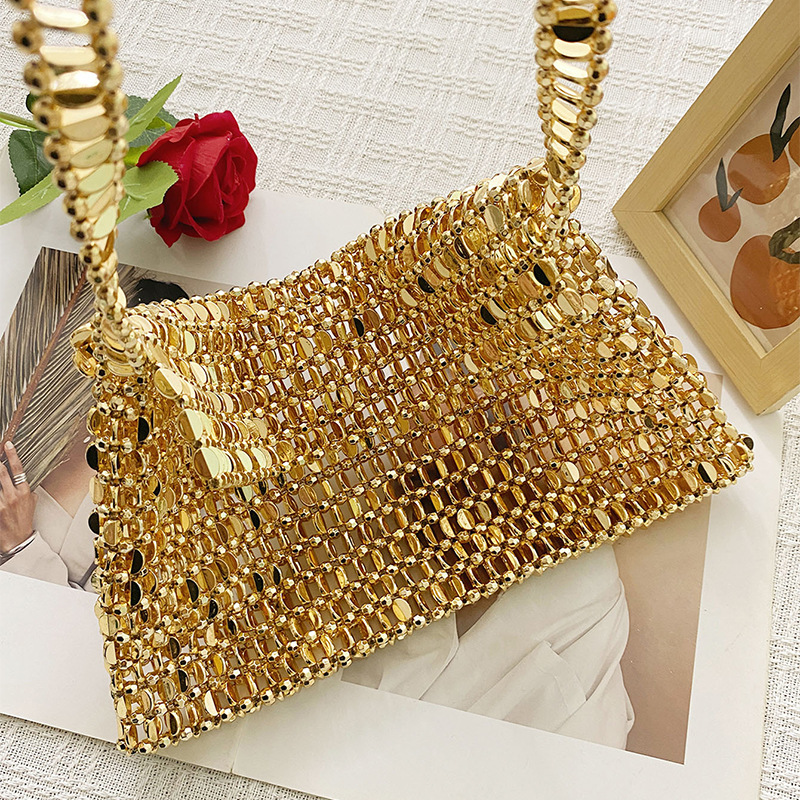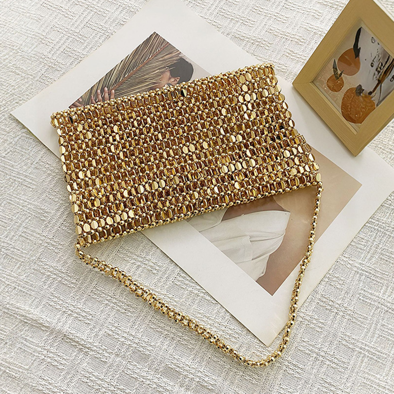Shiny Flat Melon Seeds Beads Woven Bag Large Capacity Portable Underarm Flip Women Bag Handmade Casual Square