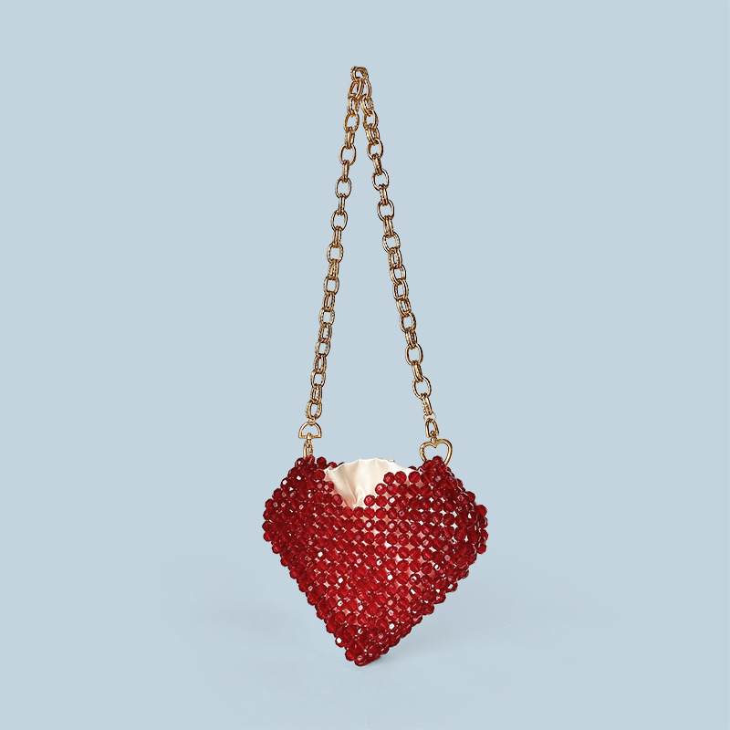 Red Love Heart Beaded Bag Hand Woven Bag Red Beads Bag Crossbody Shoulder Bag Finished Bag