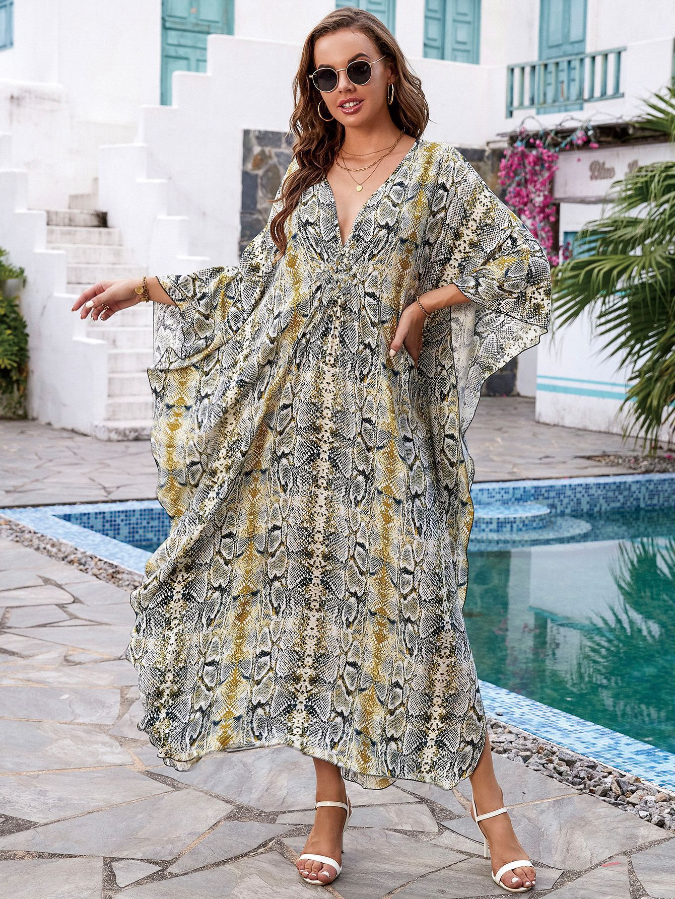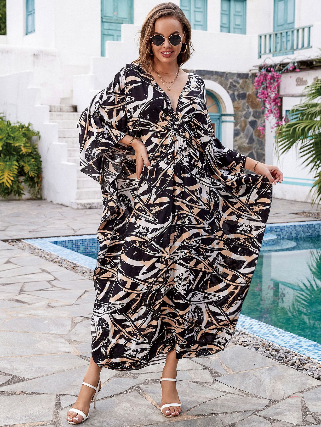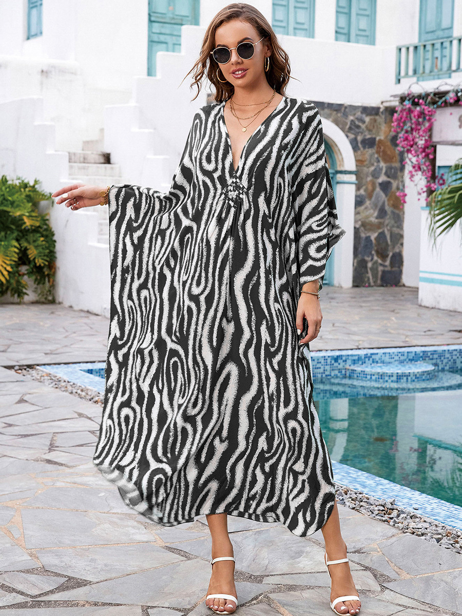 Printed Loose Robe Vacation Maxi Dress Women Beach Jacket Beach Cover Up