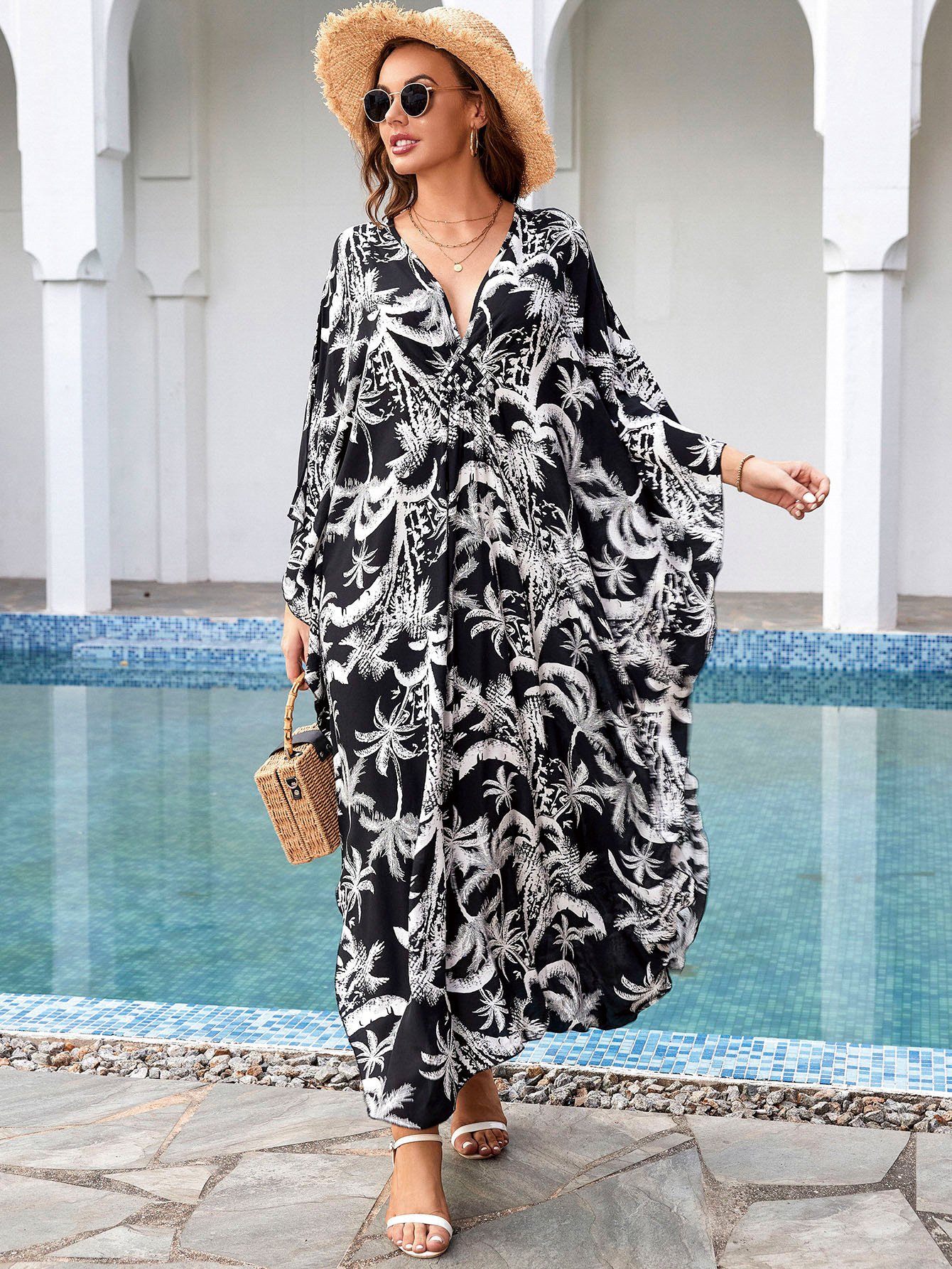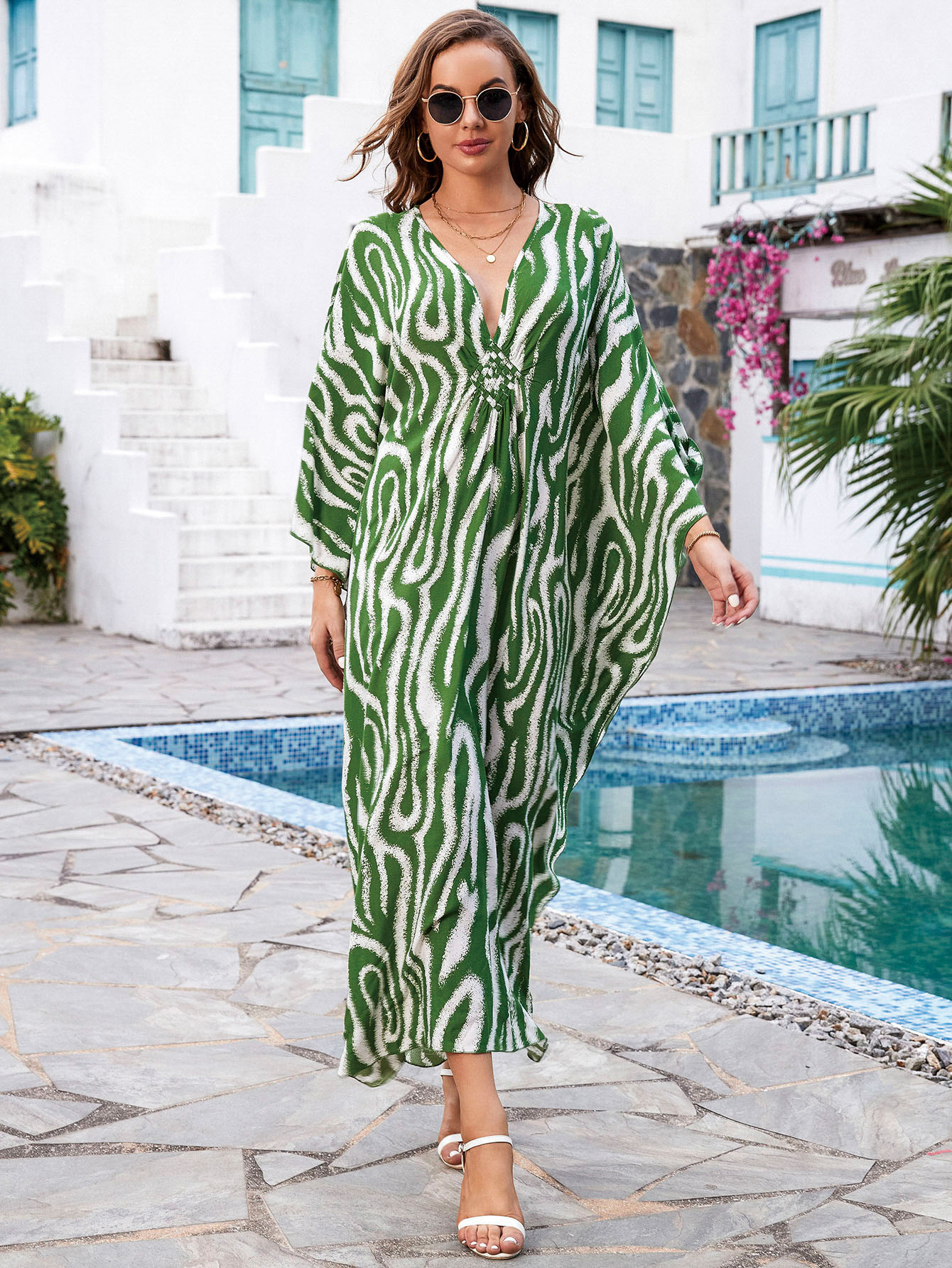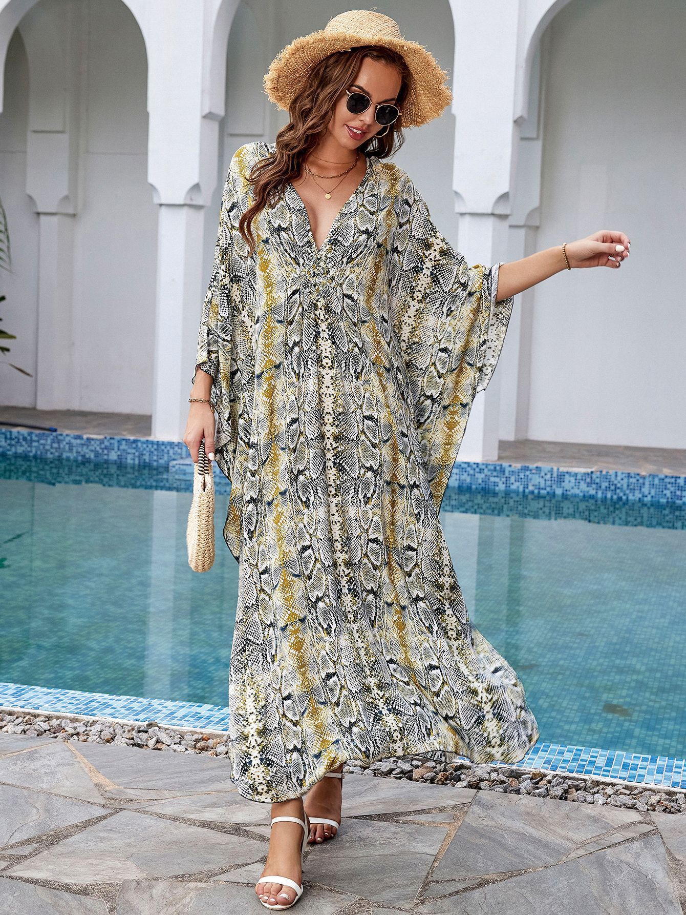 Printed Loose Robe Vacation Maxi Dress Women Beach Jacket Beach Cover Up