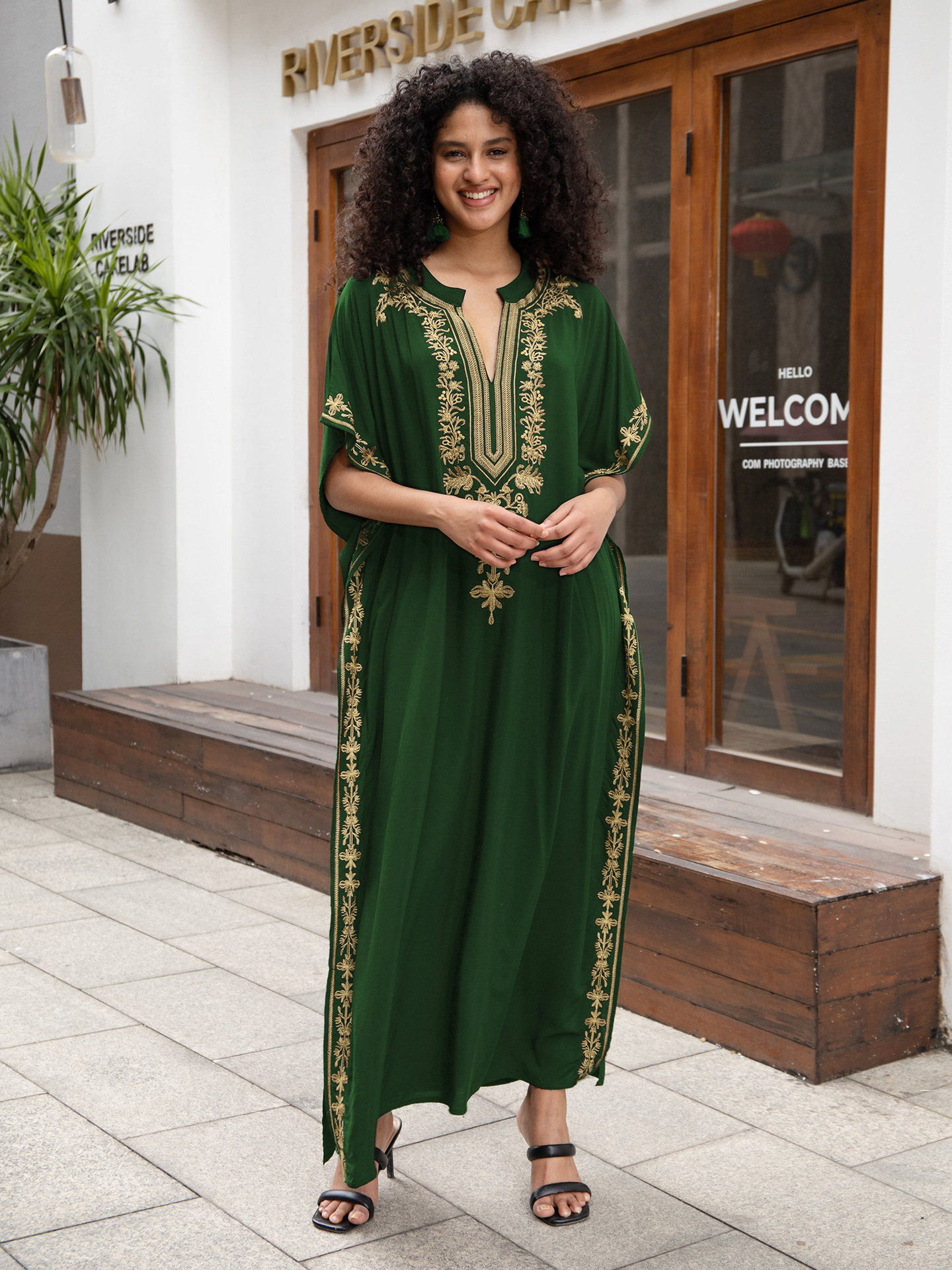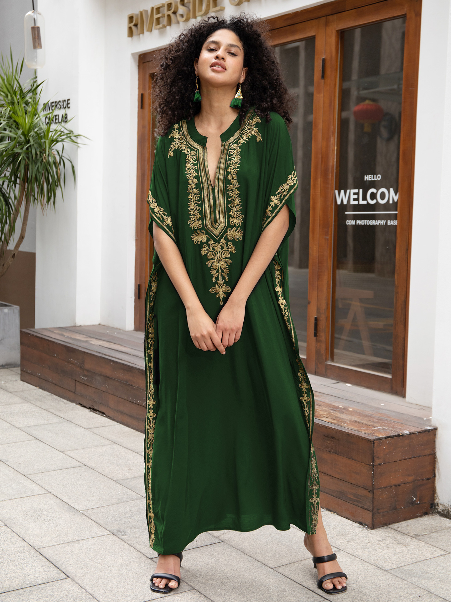 Rayon Embroidered Holiday Loose Jumpsuit Long Robe Beach Sun Protection Maxi Dress Beach Cover Up