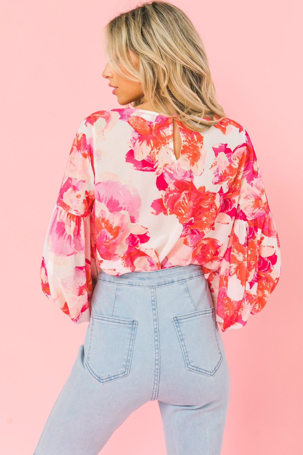A solid woven top featuring crew neckline, long sleeve and button detail.