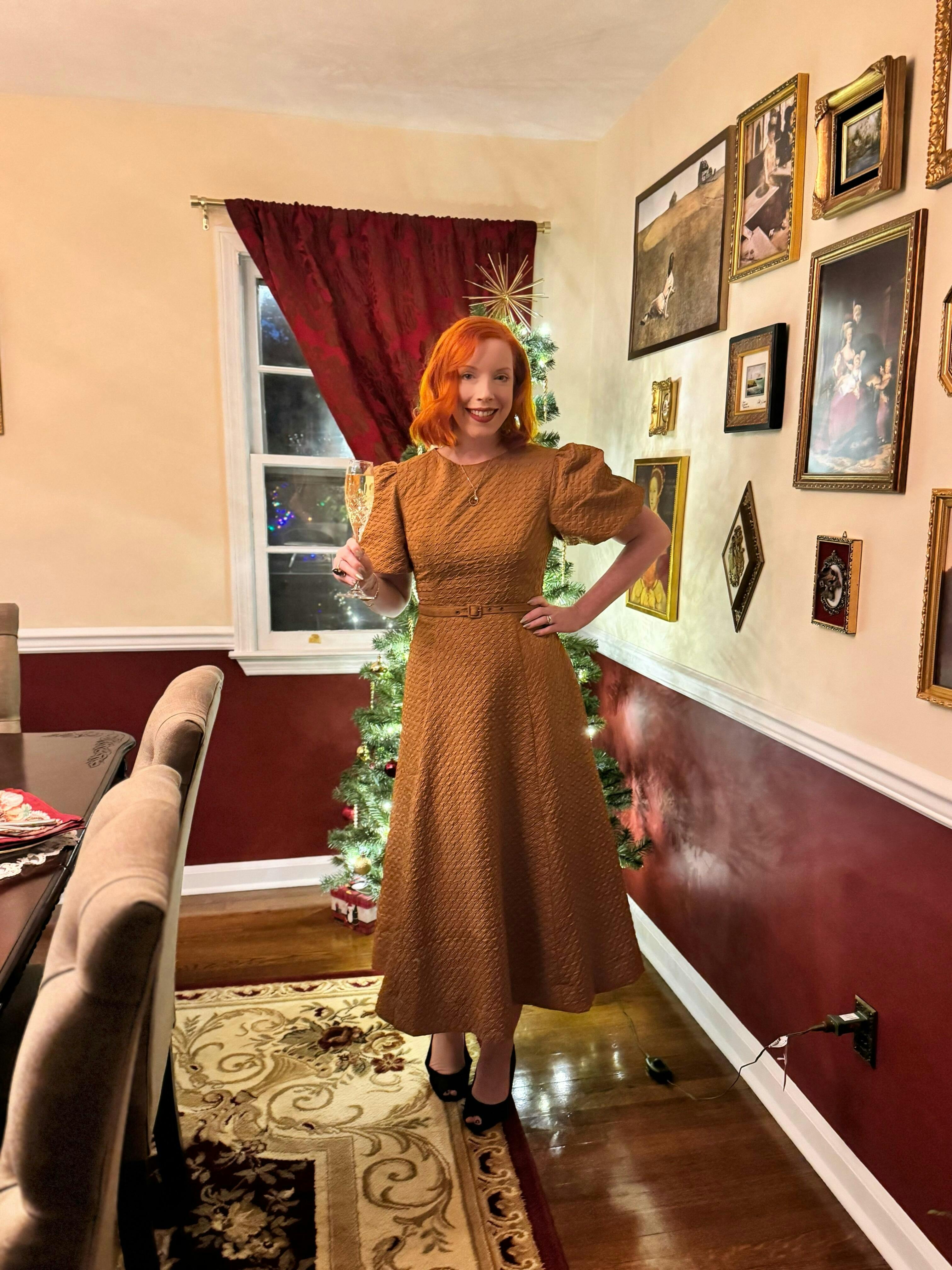 This dress is so stunning and has such a 1940s vibe. I got a medium and it fit perfectly being 5’6 and a dress size 6.